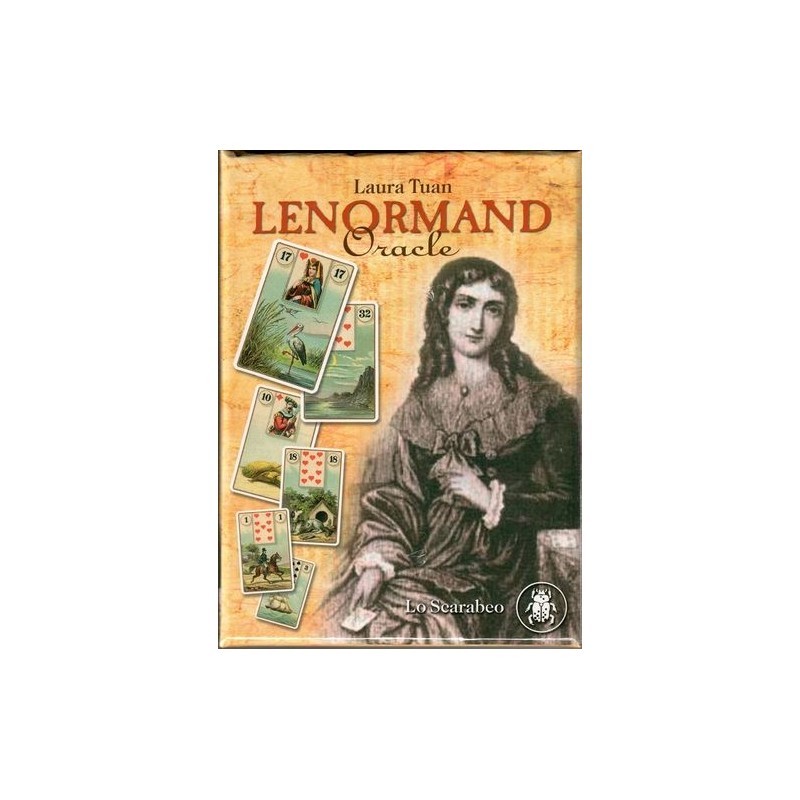 Oráculo Lenormand, Editorial Scarabeo, Autora Lua Tuan, Libro Guia y 36 cartas, 10 x 13,5 cm.