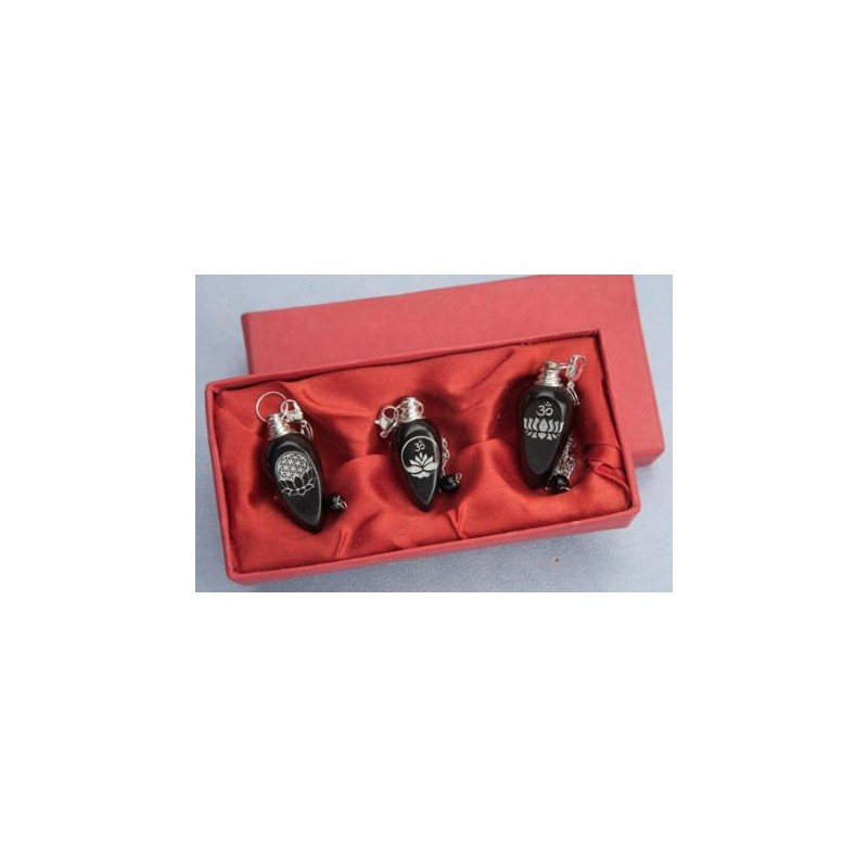 Péndulo Plateado Testigo con Apertura y Turmalina. Medidas aproximadas del péndulo 4,5 x 3 centímetros