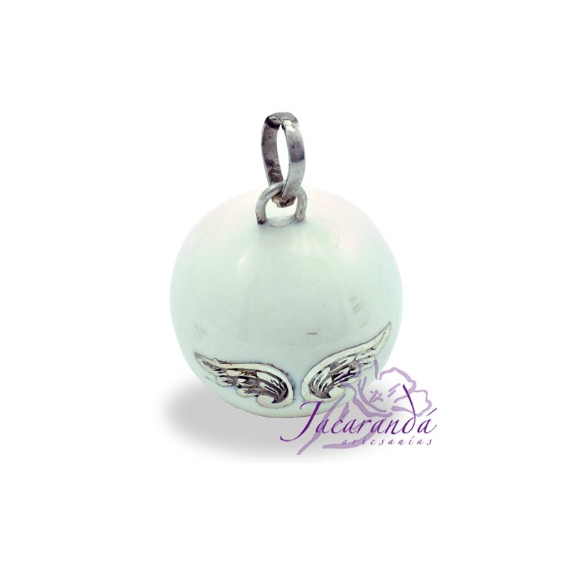 Llamador de ángeles Plata 925 con diseño Alas de Ángel color Blanco 25 mm